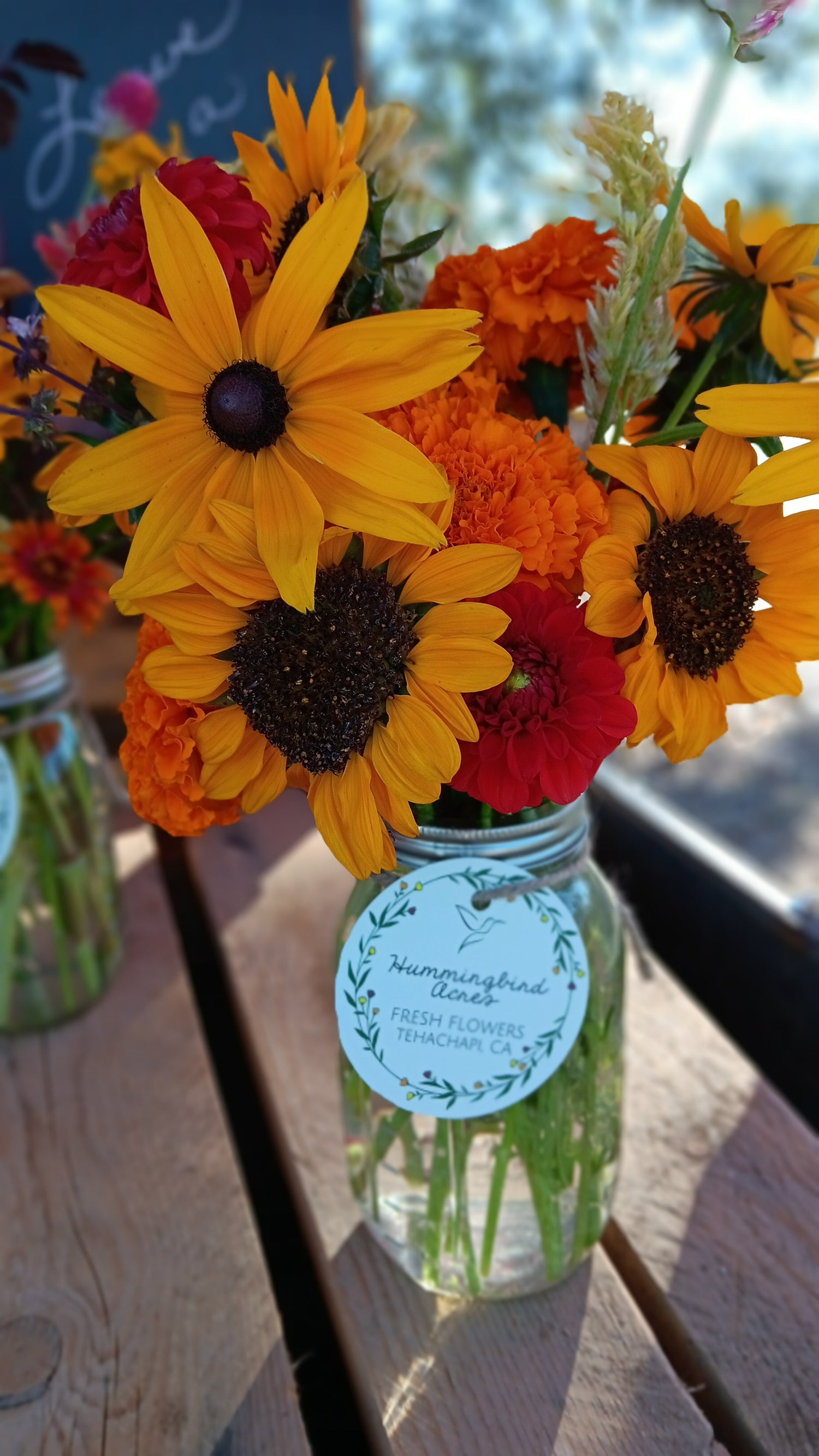 - Gomphrena, Sunflowers, Celosia, White Dill, some Dahlias!!